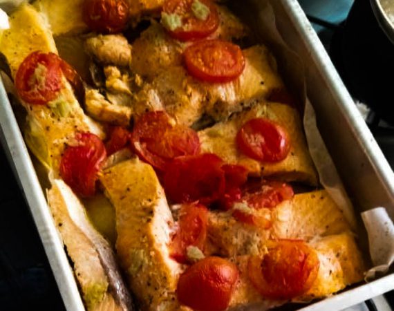 Salmão Assado com Rodelas de Tomates